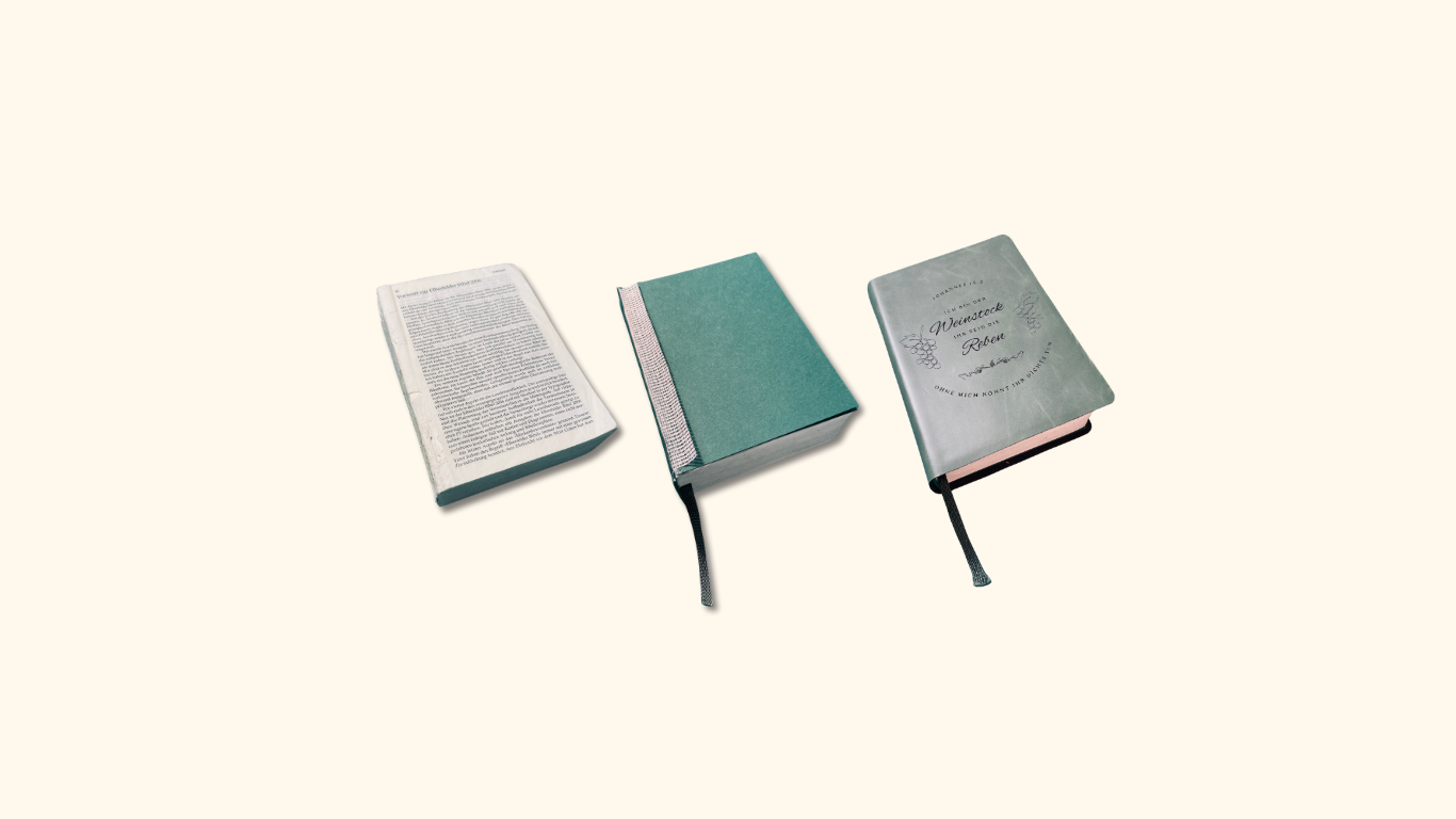 Wir geben alten Bibeln ein neues Leben mit handgefertigten Einbänden, hochwertigen Materialien und viel Liebe zum Detail.